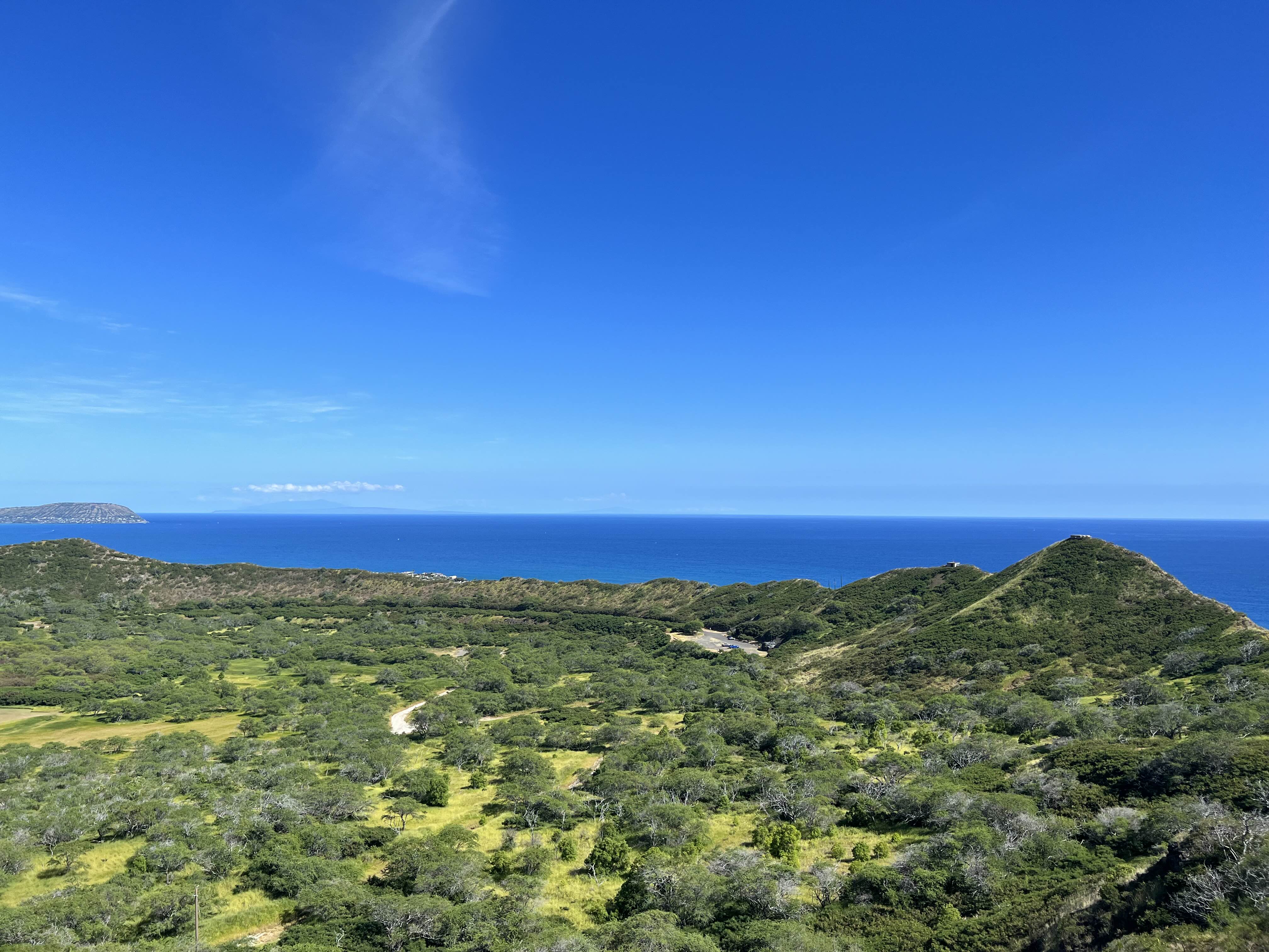 제일 많은 사람이 가는 하이킹 코스답게 입장료 인당 $5, 주차 한 대당 $10가 있습니다. 분화구와 와이키키가 내려다 보이는 뷰입니다. 뙤약볕이므로 선크림과 물을 충분히 들고 올라가는 것이 좋습니다. 정상 다녀와서 파인애플 아이스 먹으면 행복합니다.