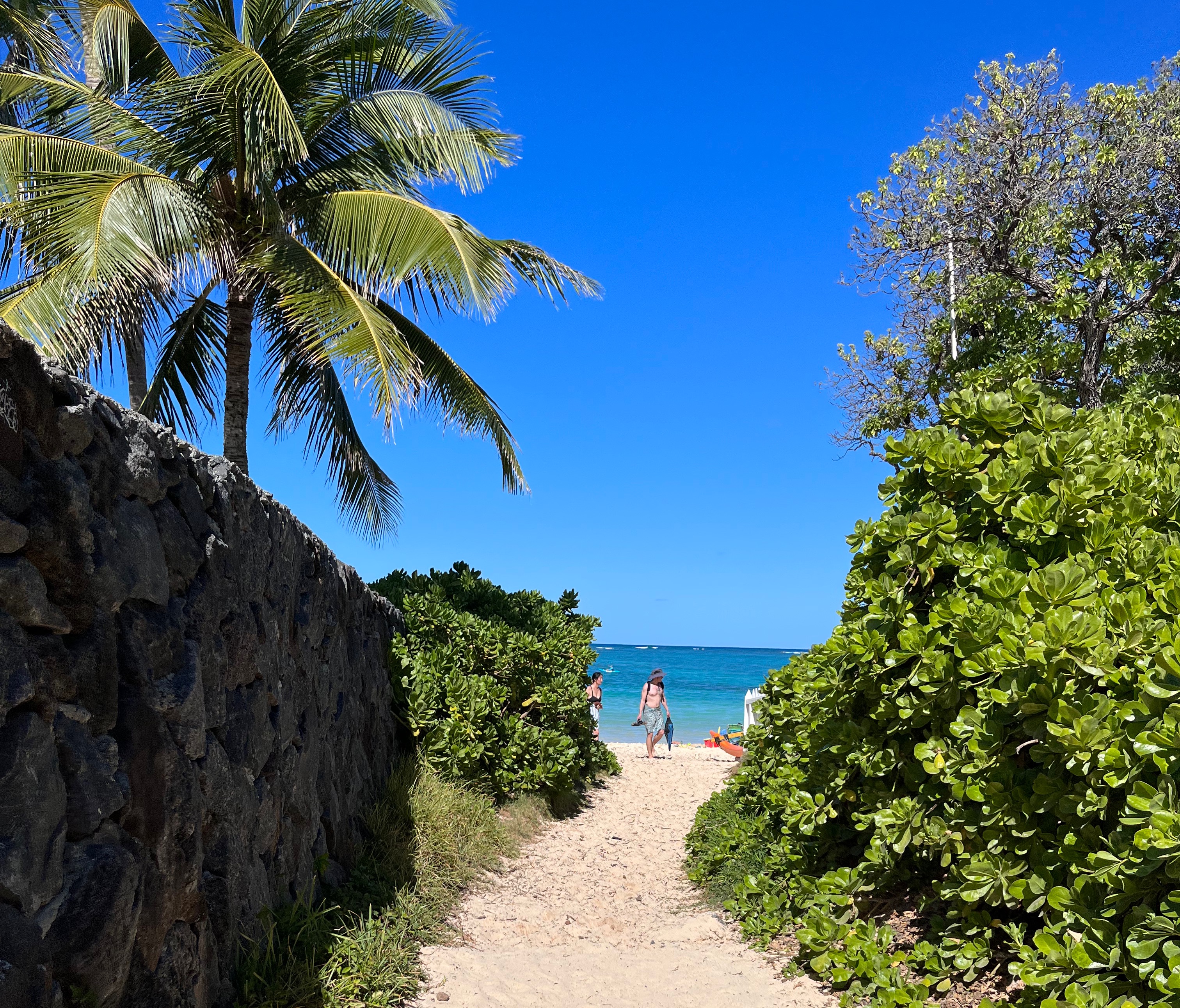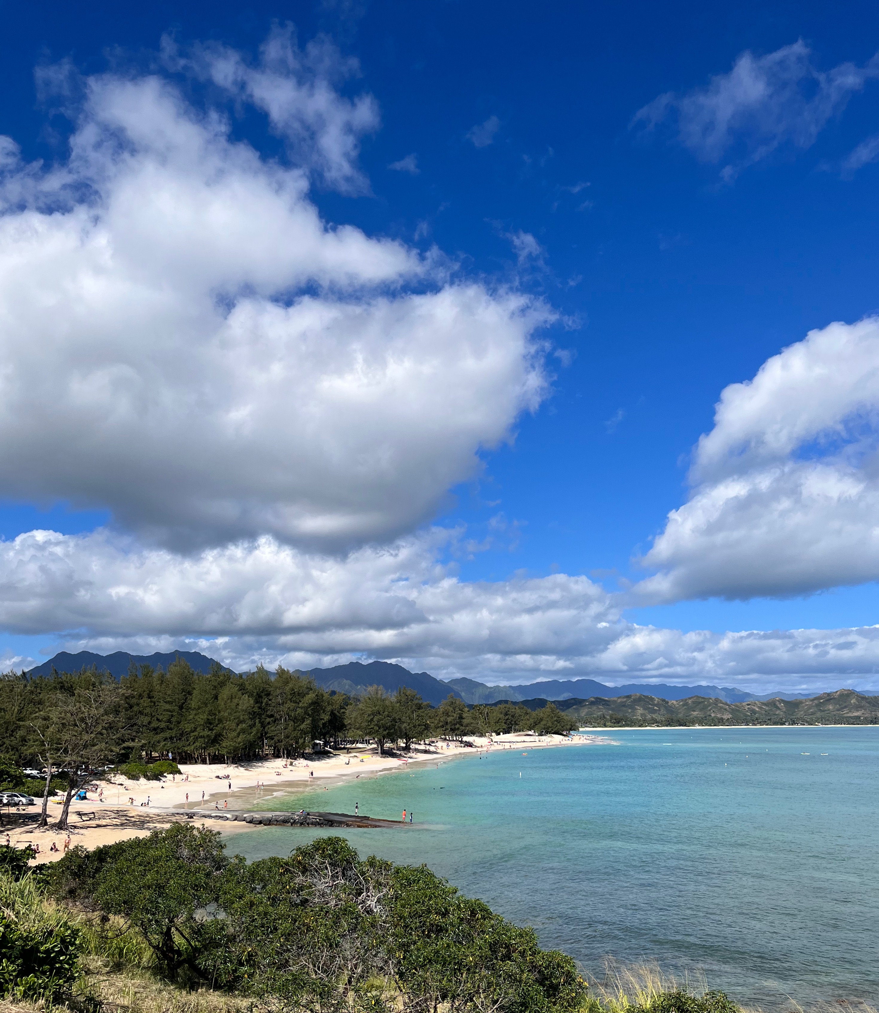 카일루아 해변이랑 매우 비슷하고 바로 옆에 있는데, 모래사장이 좁아서 프라이빗하고, 바로 뒤에 있는 야자수 때문에 오후에 그늘이 진다는 장점이 있습니다. 라니카이에 주차하기가 쉽지 않아서 그냥 카일루아 해변에 주차해서 걸어가는 것 추천합니다. 반시계 방향으로 뱅뱅 돌다 보면 언젠가는 한 자리씩 나긴 하지만 시간이 아깝습니다. Kailua Beach 주차장에서 걸어오는 길도 나쁘지 않습니다.
